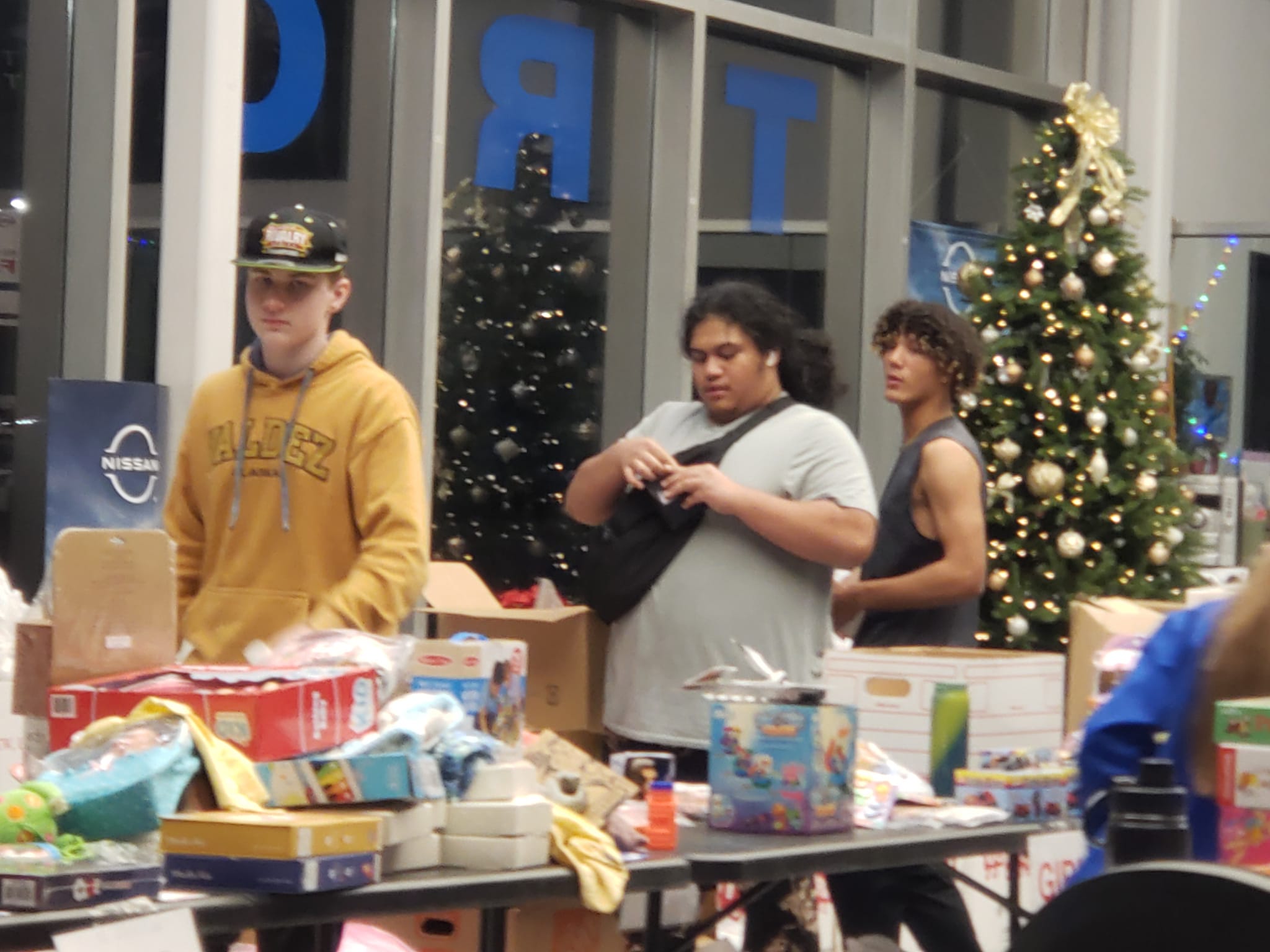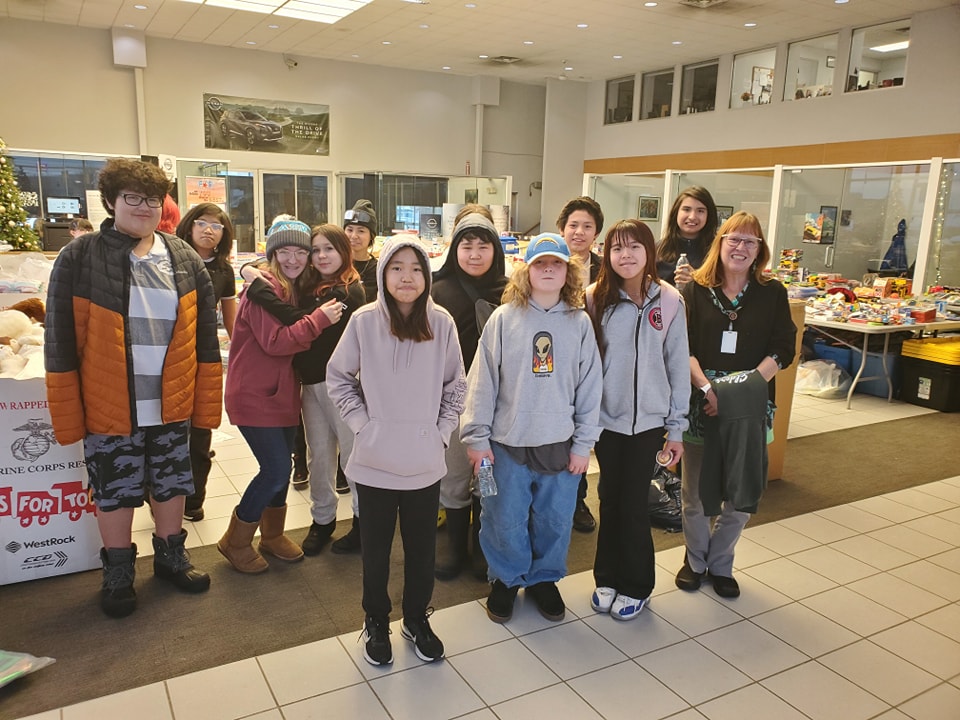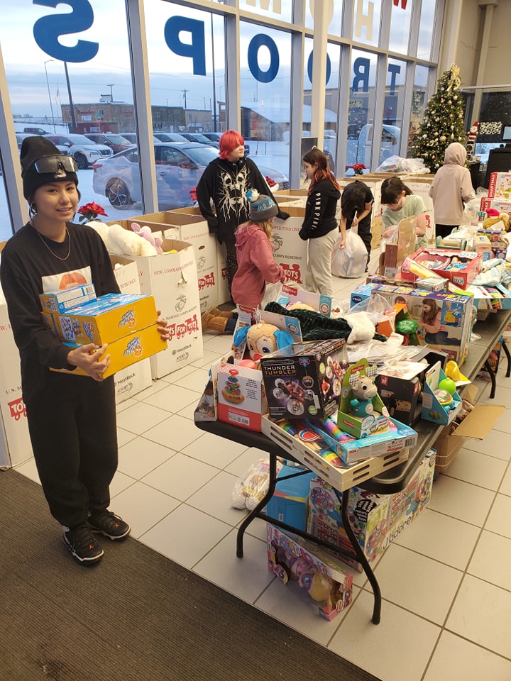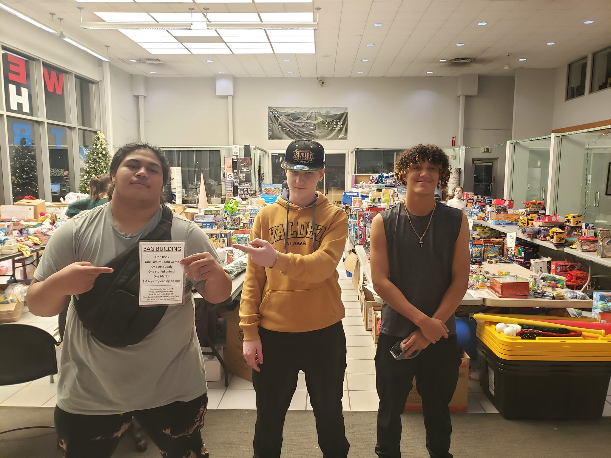 We had a few Lathrop Football players come and help us out to get class credits! We also had the 7th grade class at Effie Kokrine! They diligently made 20+ bags for teens and a whole table full of ornaments for the seniors getting meals on wheels! Thank you!